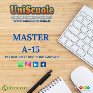 Il Master A15 ” Discipline sanitarie” è rivolto ai Laureati in Giurisprudenza, o altro ambito professioni-sanitarie, che intendono accedere alla classe di concorso A-15 (Professioni sanitarie) , al fine di svolgere l’attività d’insegnamento. Il Master è spendibile per l’aggiornamento delle graduatorie d’insegnamento secondo la normativa vigente, inoltre, gli insegnamenti presenti nell’ordinamento didattico del master possono essere valorizzati anche per colmare eventuali crediti formativi richiesti per l’accesso alla classe di concorso A-15.